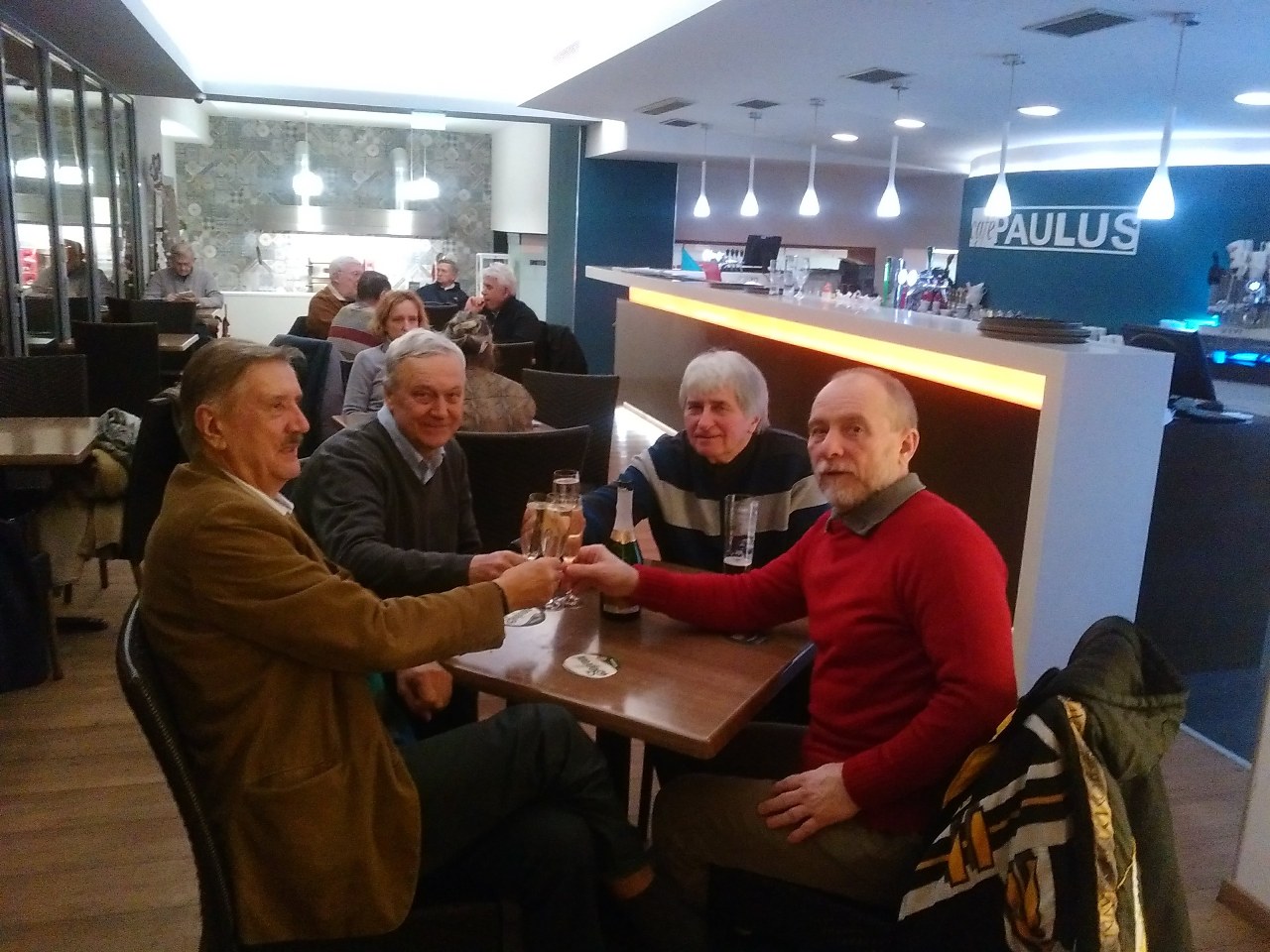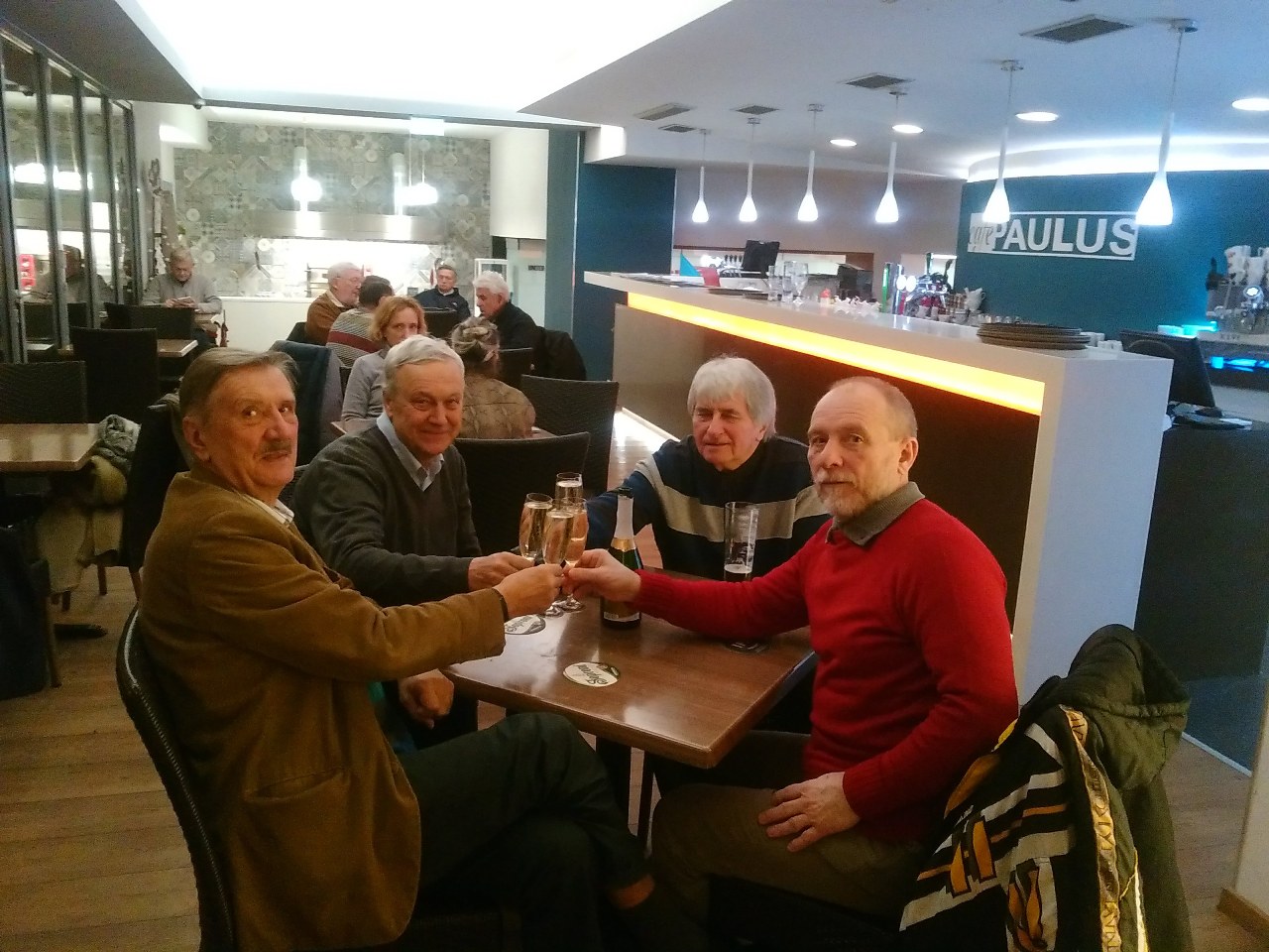 Annyira jól összejöttünk, hogy a mai napig hétfőnként összejövünk - ma már az Ifjúság úti tornateremben - utána a Paulusban egy kis beszélgetésre, iszogatásra, időnként ünneplésre.